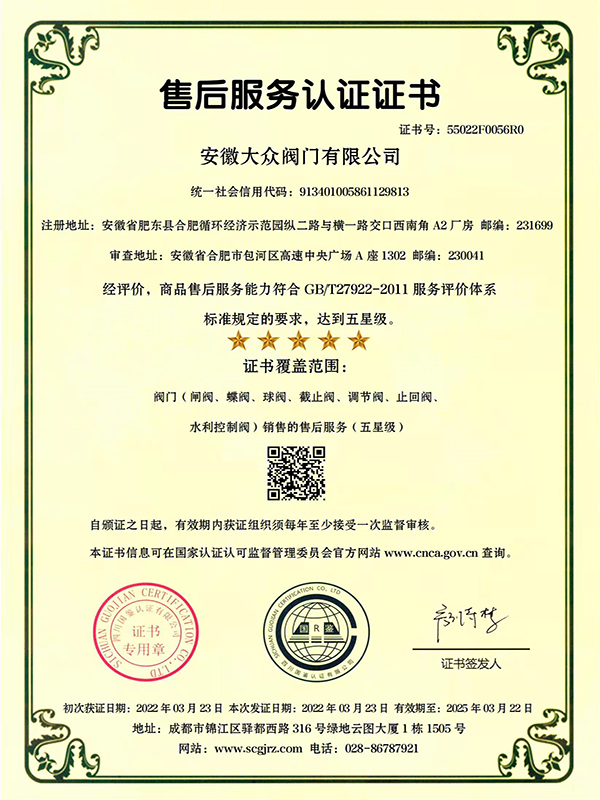 售后服务认证证书