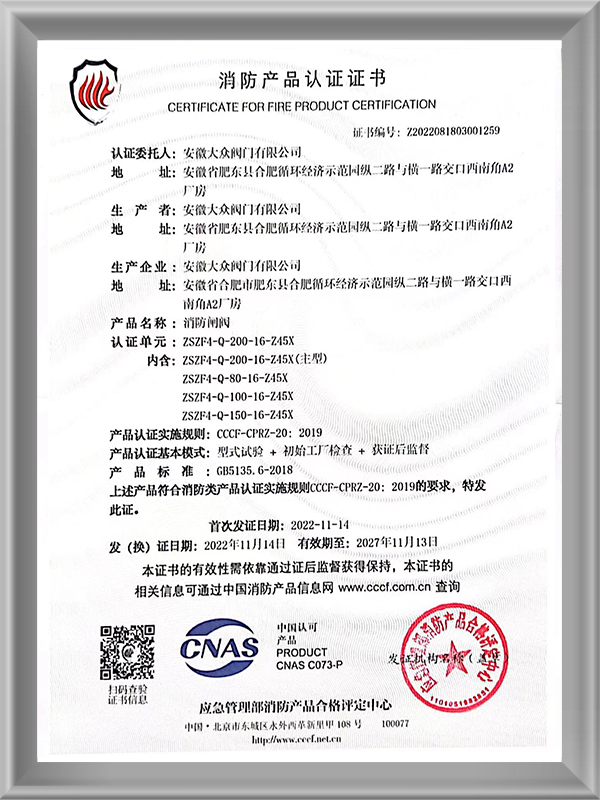 Certificate for fire product certification